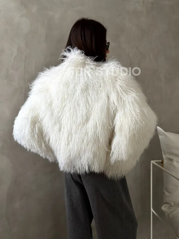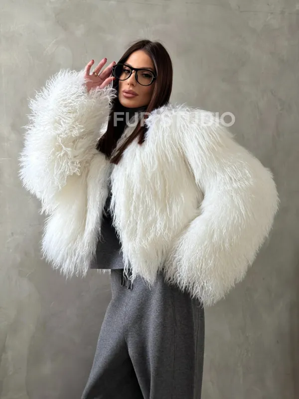 Белая кроп-шуба из меха ламы 102778