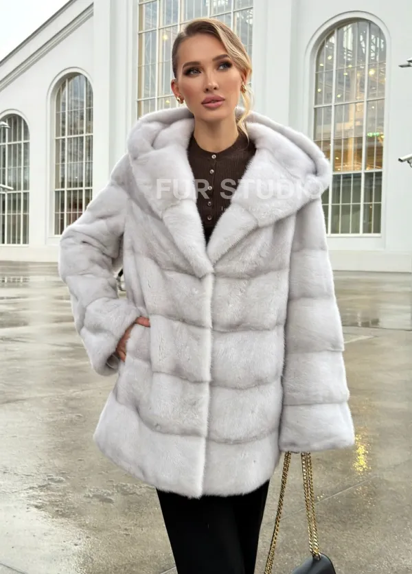 Белая норковая шуба с капюшоном - автоледи 102675
