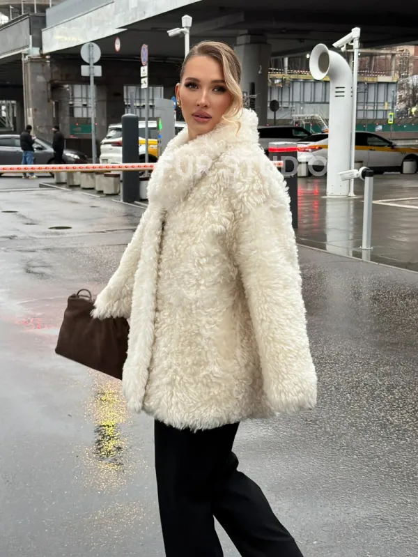 Белая шубка из тиградо. Модель предлагается в размерах от 42 до 48. Оптимальная длина моделей 70-75 см подчеркивает линии вашей фигуры. Эта дубленка станет неотъемлемой частью гардероба для тех, кто предпочитает роскошь и утонченность натуральной кожи.