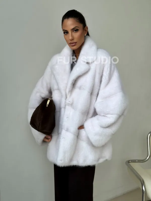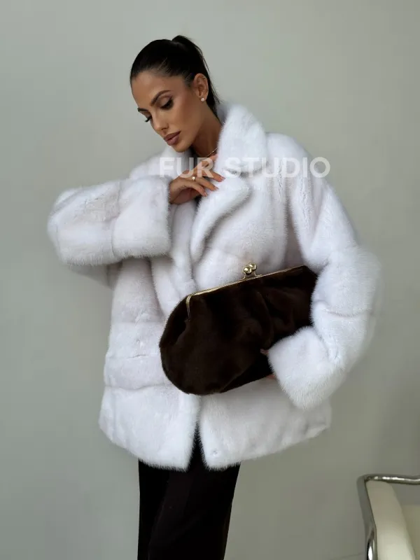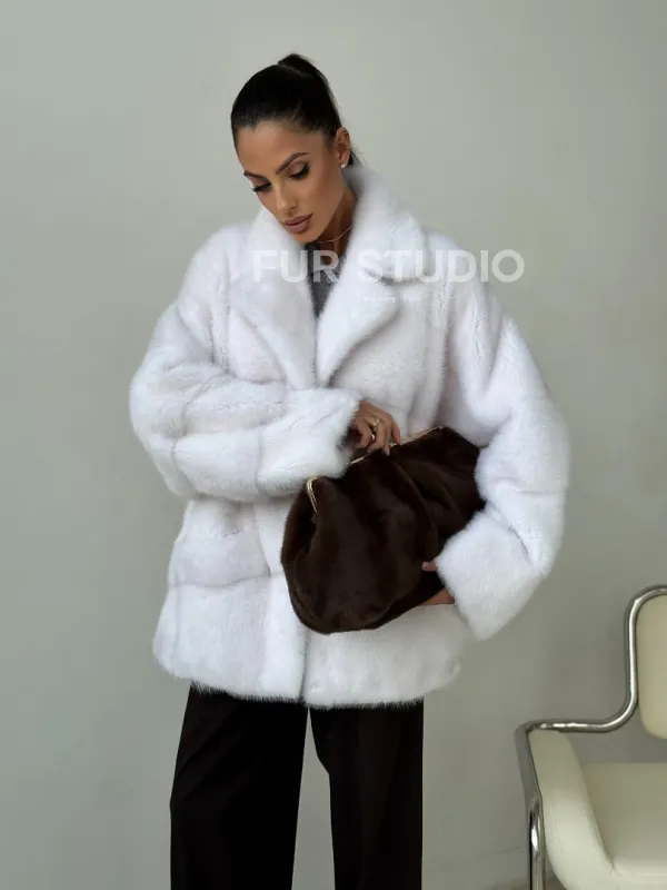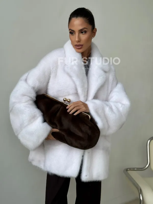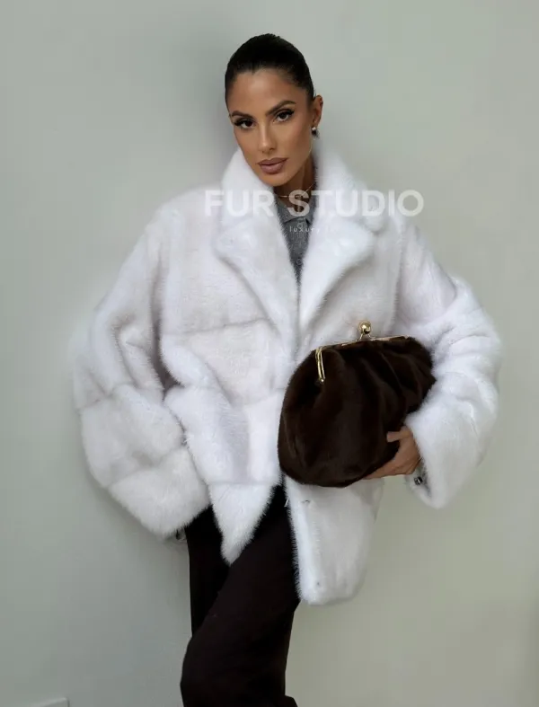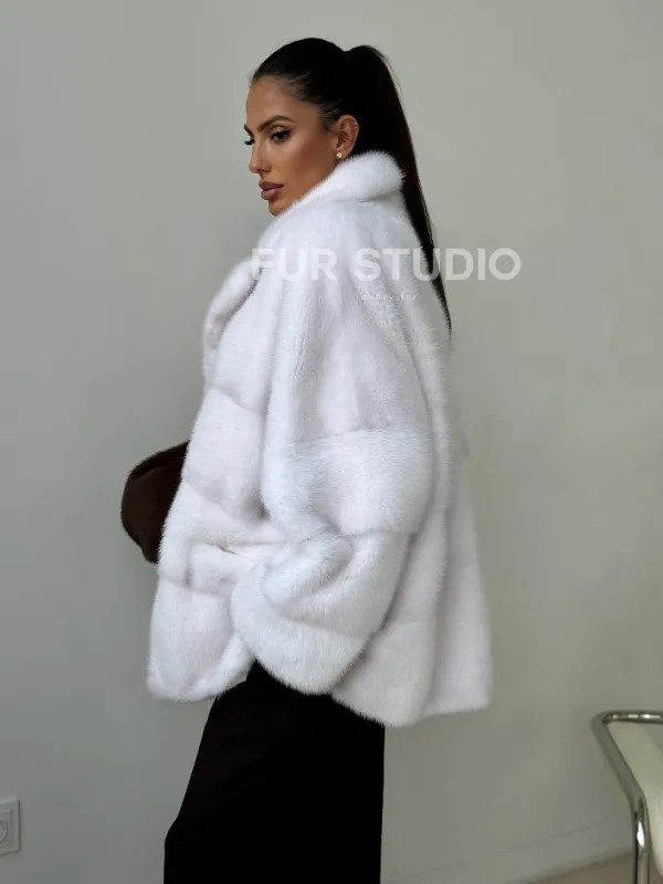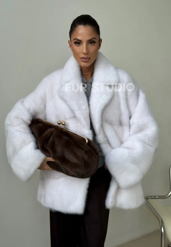 Белый норковый полушубок 102394