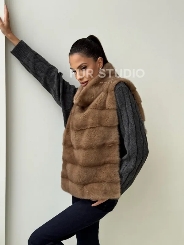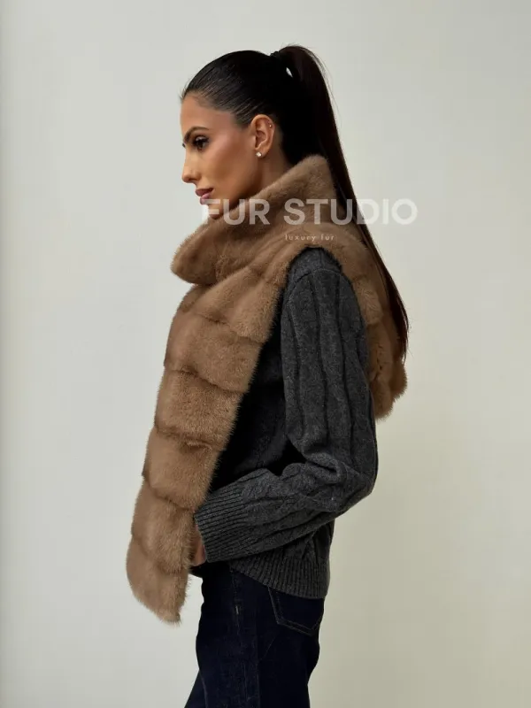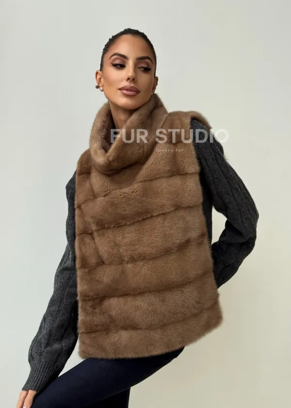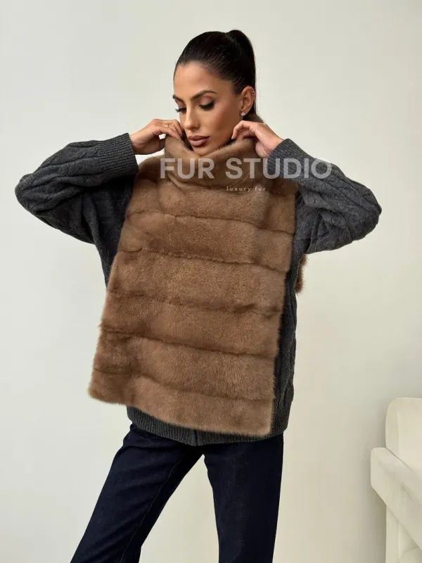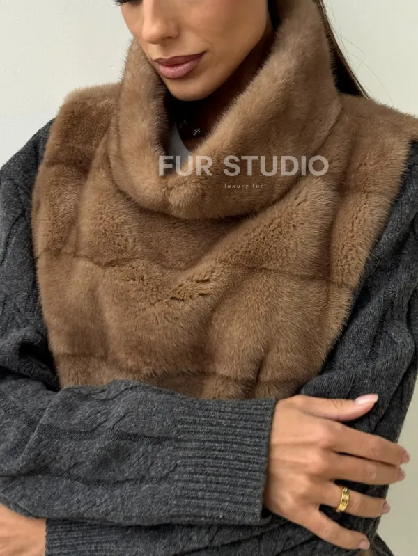 Бежевая норковая манишка 102425