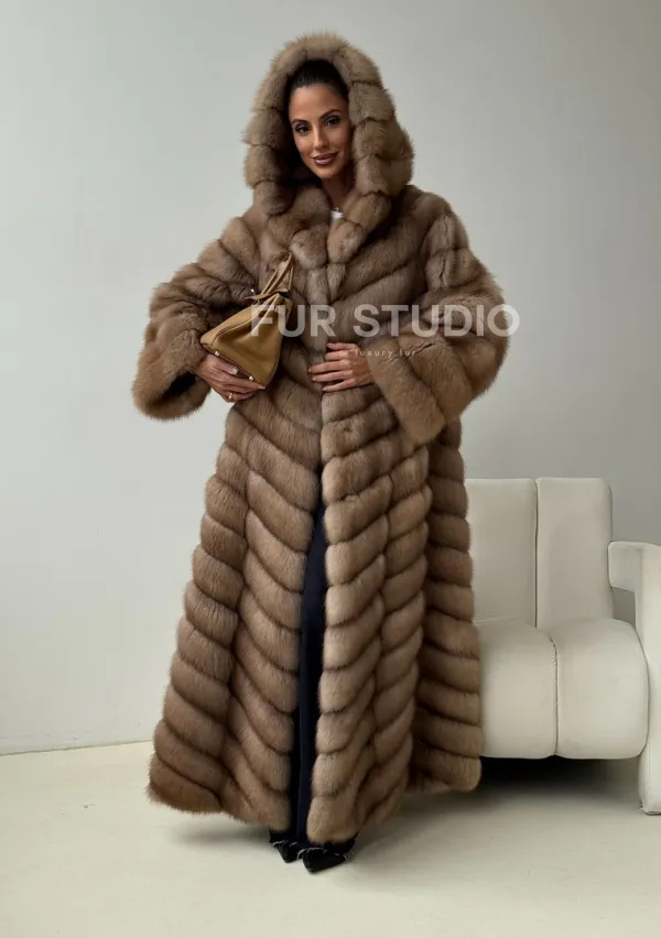 Длинная шуба из меха куницы с капюшоном доступна для покупки в нашем шоуруме Furs Studio в . У нас так же есть доставка во все города России. Добавьте немного роскоши в свой гардероб с этой шубой, которая будет служить вам многие годы.