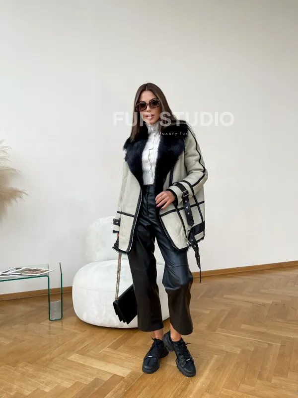 Оригинальный пояс, застегивающийся на бедрах, делает модель необычной. При этом ходить в дубленке очень удобно. Модель прекрасно подойдет под любой гардероб: от базового до вечернего туалета. Добавьте к образу статусную сумочку и идеальный look готов. Купить дубленку на мехе тосканы в цвете Grey могут женщины, которые любят выделяться из толпы и не быть, как все.