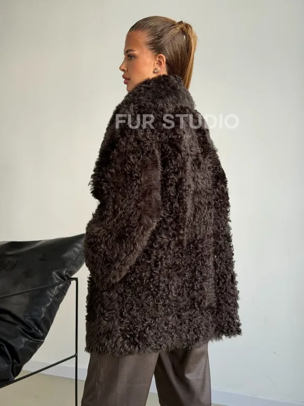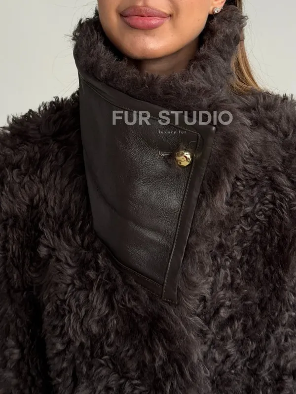 Дублёнка коричневая из овчины - тиградо 102603