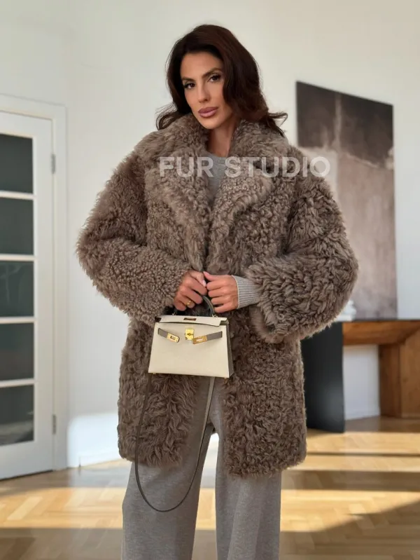 Двусторонняя шуба - дублёнка из меха испанского тиградо 101436