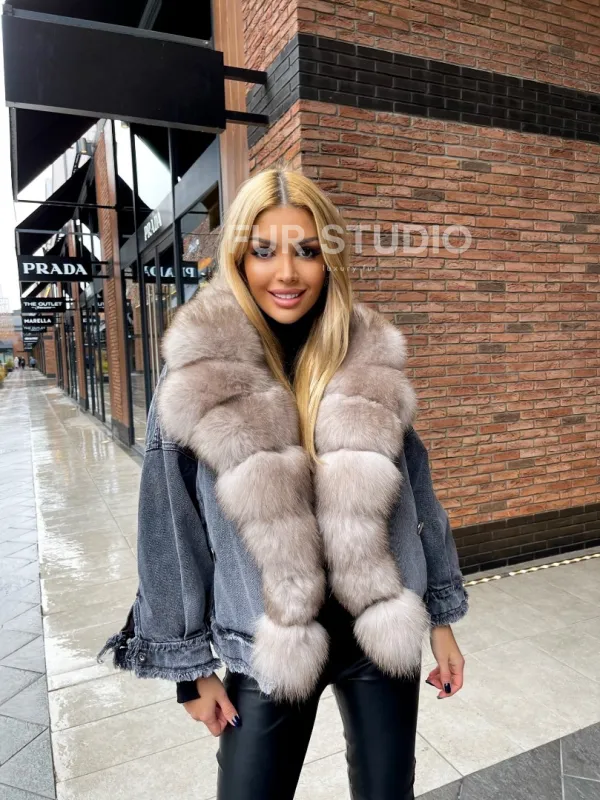 Джинсовая куртка с мехом финского песца 102881