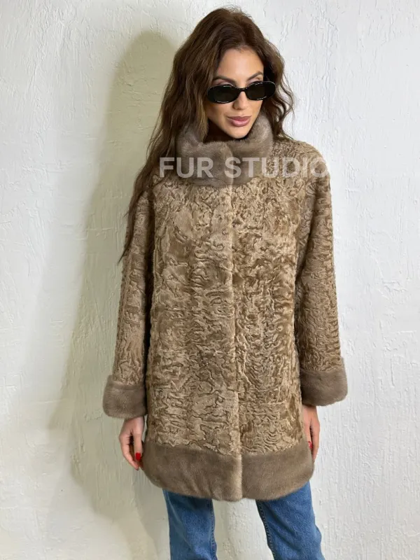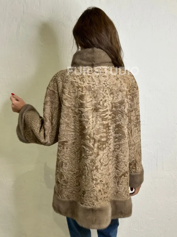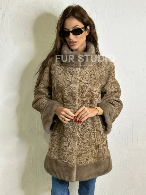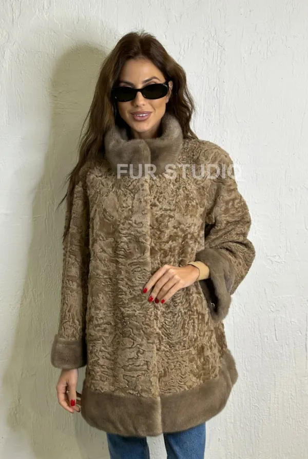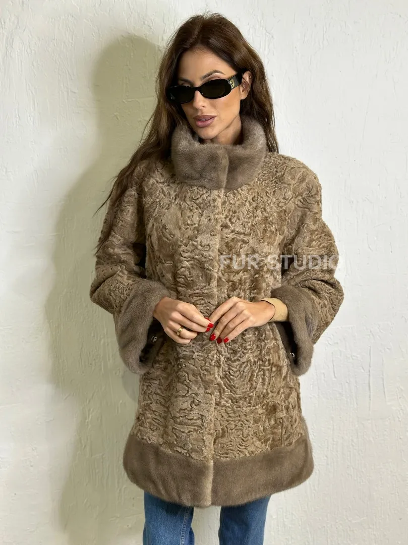 Каракульча стойка воротник отделка норка - пастель доступна для покупки в нашем шоуруме Furs Studio в . У нас так же есть доставка во все города России. Добавьте немного роскоши в свой гардероб с этой шубой, которая будет служить вам многие годы.