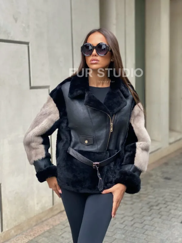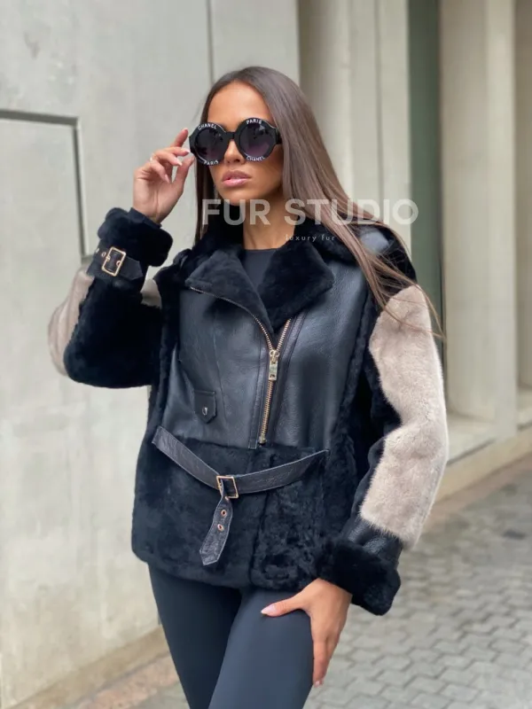 Куртка – дубленка из мериноса с мехом норки – удивительное сочетание классики и современной моды. Оригинальная модель создана для девушек, которые любят экспериментировать. Уникальное сочетание кожи с мехом норки сделают образ необычным и изысканным. Вкладки на рукавах смотрятся лаконично и сдержанно. Стильный ремень очертит талию и сделает силуэт женственным.