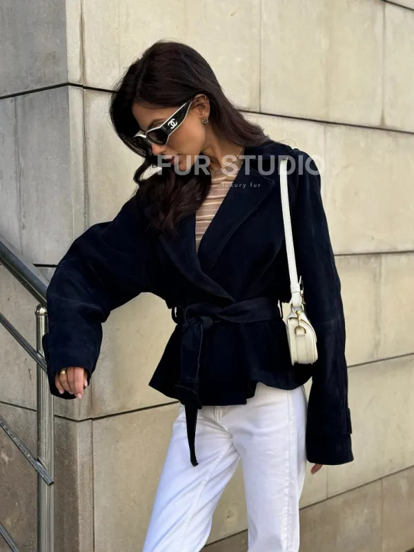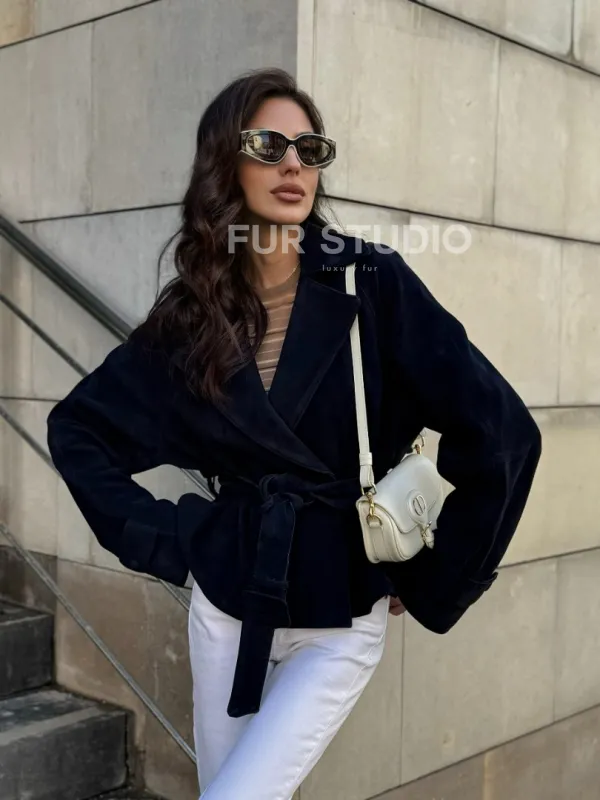 Модная куртка из замшевой кожи доступна для покупки в нашем шоуруме Furs Studio в , где также предоставляется удобная доставка во все города России.
