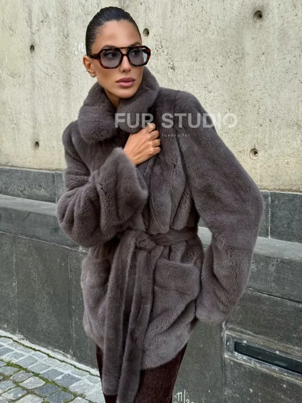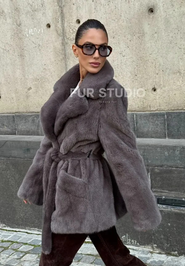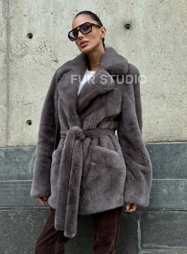 Длинные рукава подчеркнут нежные кисти, а удобные карманы не допустят, чтобы они замерзли. Модель подойдет под базовый гардероб, сочетается с вечерним нарядом. Неординарная сумочка дополнит образ, и вы будете выглядеть, как с обложки журнала. Купить короткую шубу из меха норки с воротником из меха куницы цвет лаванда могут только девушки, которые знают, что хотят от жизни.