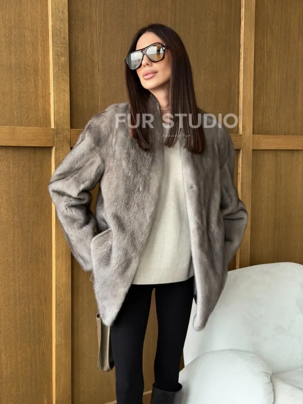 Норковый жакет в натуральном сером цвете 102737