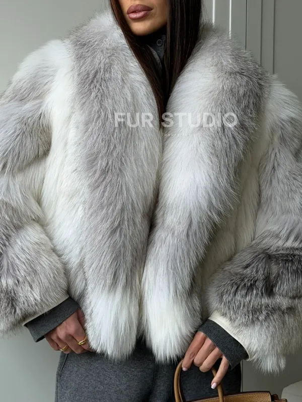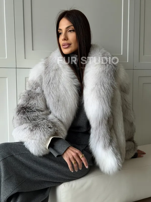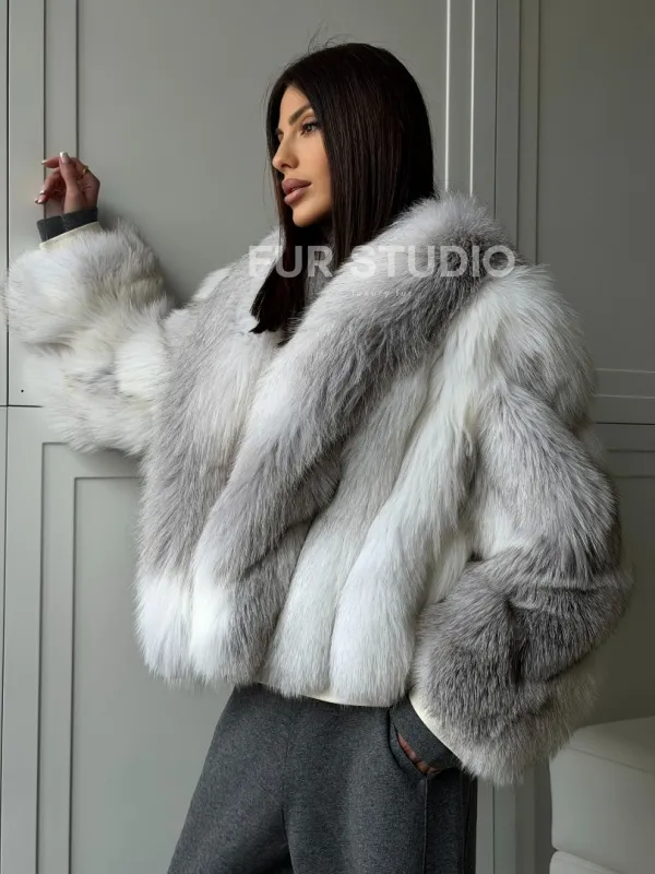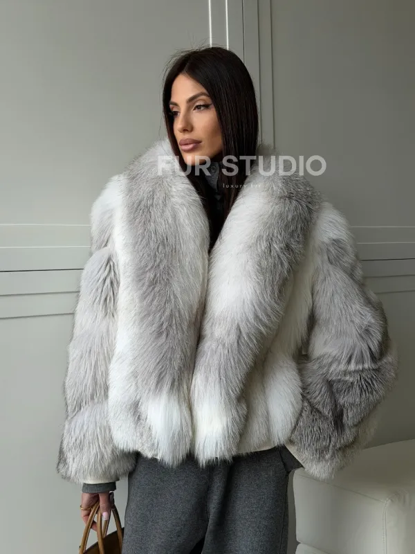 Мех данной шубы лиса, цвет белый. Предлагается в размерах от 42 до 50. Длина модели 60-65 см, что выгодно подчеркивает фигуру девушек. Эта модель идеально подойдет для девушек и женщин, предпочитающих роскошные натуральные меха.