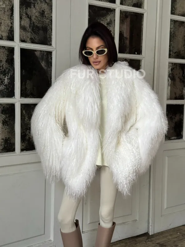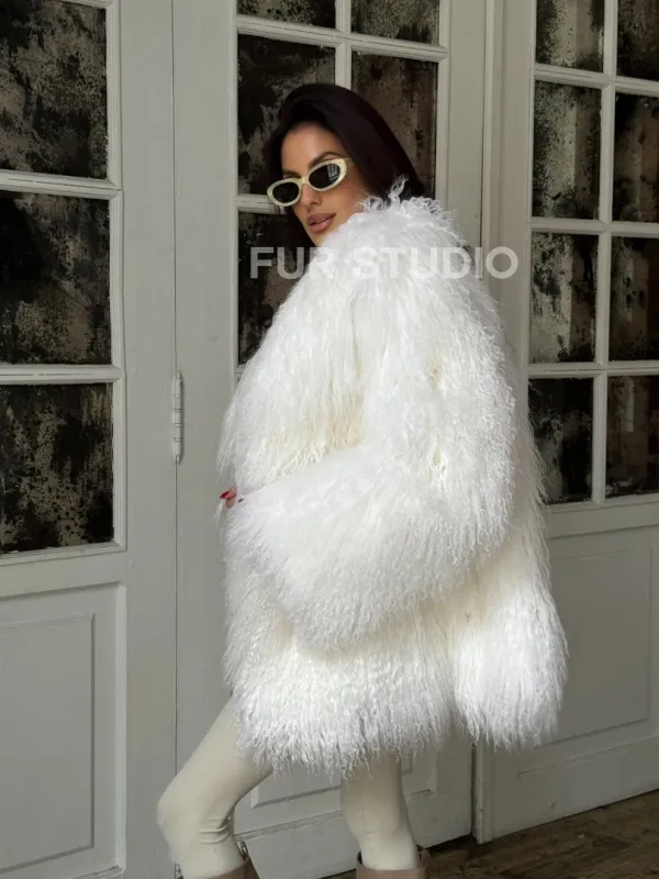 Мех данной шубы лама, цвет белый. Предлагается в размерах от 42 до 52. Длина модели 75-80 см, что выгодно подчеркивает фигуру девушек. Эта модель идеально подойдет для девушек и женщин, предпочитающих роскошные натуральные меха.