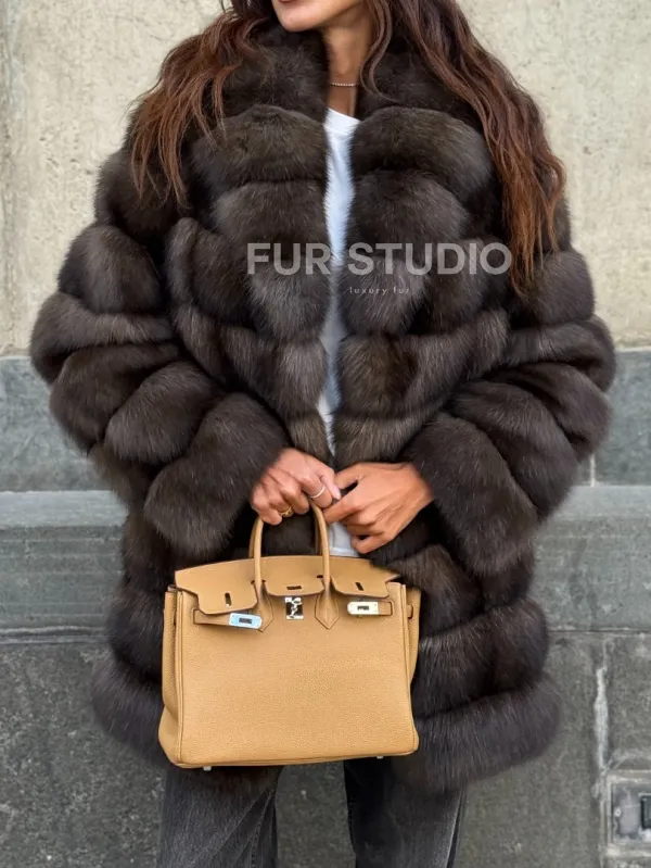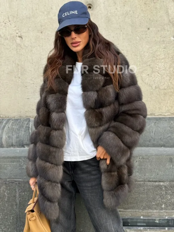 Оптимальная длина удобна в носке, не сковывает движение. Воротник стойка позаботится о шее в непогоду и подчеркнет ее изящество. Широкие рукава выделят тонкие кисти. Прямой крой удлиняет силуэт и зрительно скрывает недостатки фигуры. Купить шубу из меха соболя станет отличным вложением для женщин, которые не привыкли себе в чем-то отказывать.